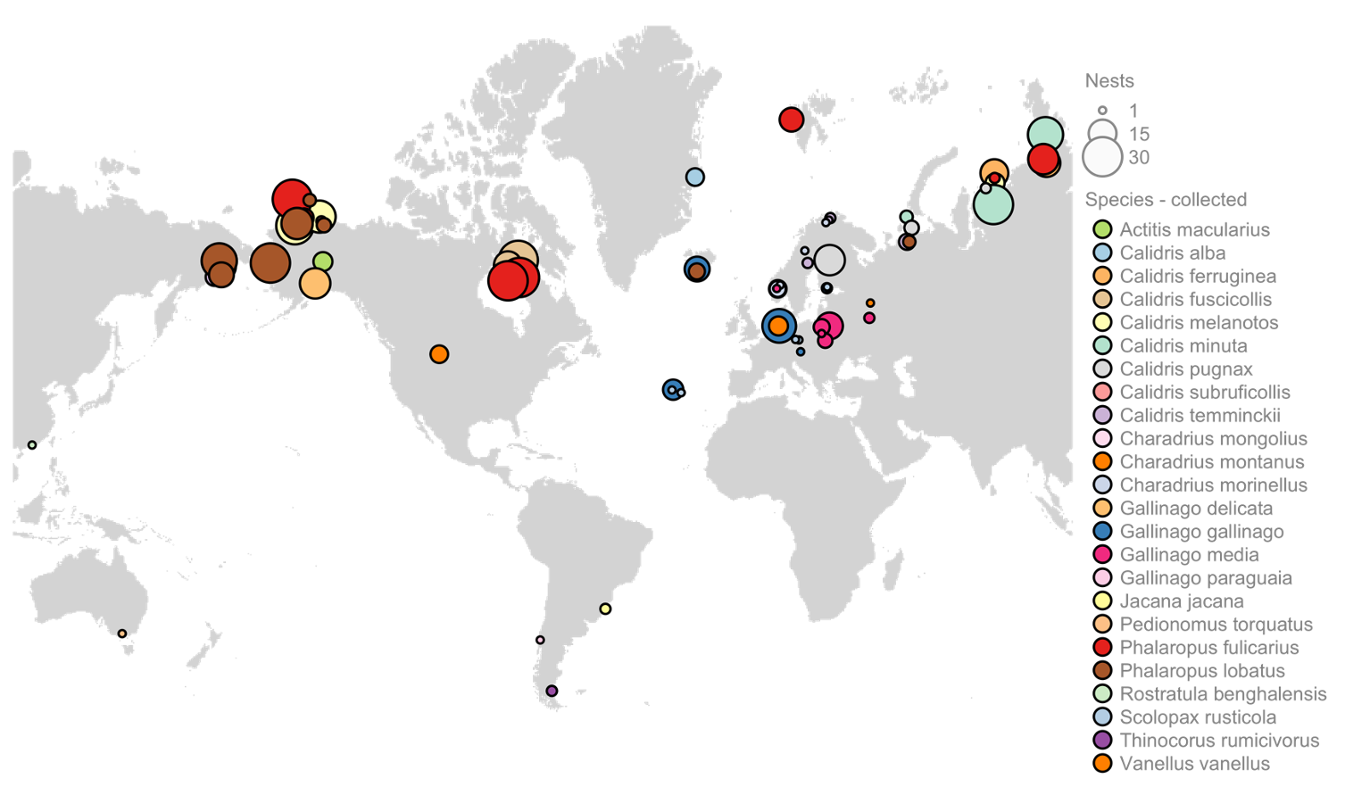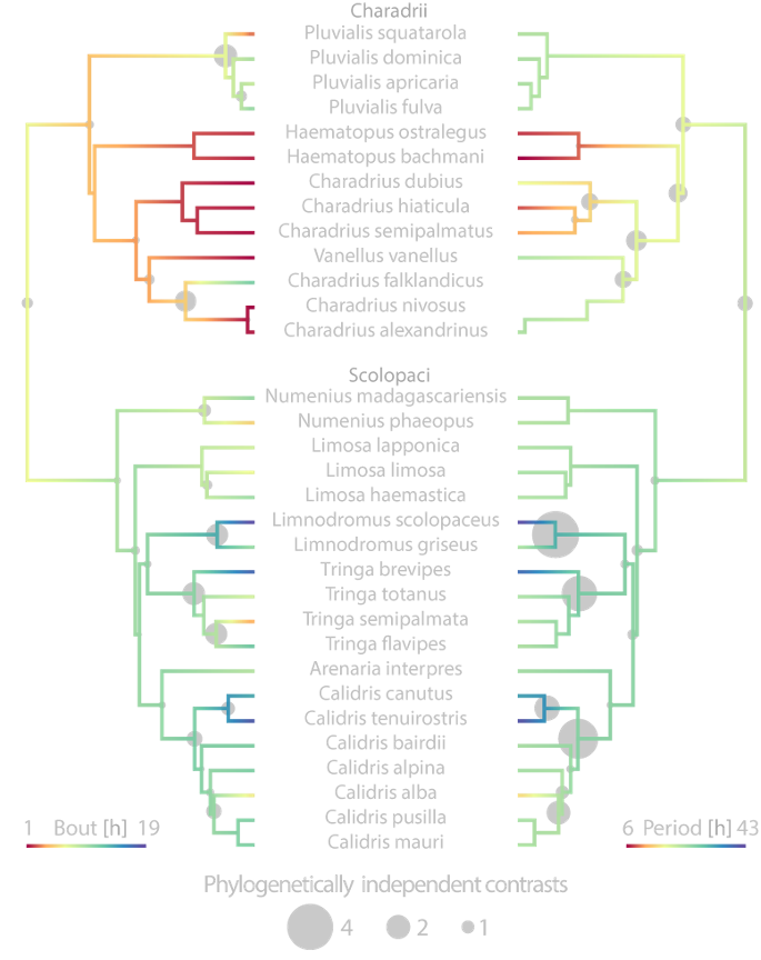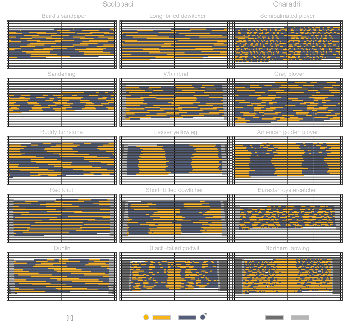 First, we collected data on biparentally incubating shorebirds and showed unexpected between- and within-species diversity of incubation rhythms and that latitudinal cline in diel-light changes and anti-predation strategy of the species shape the rhythms (see the paper and the blog-post on how this came to be).